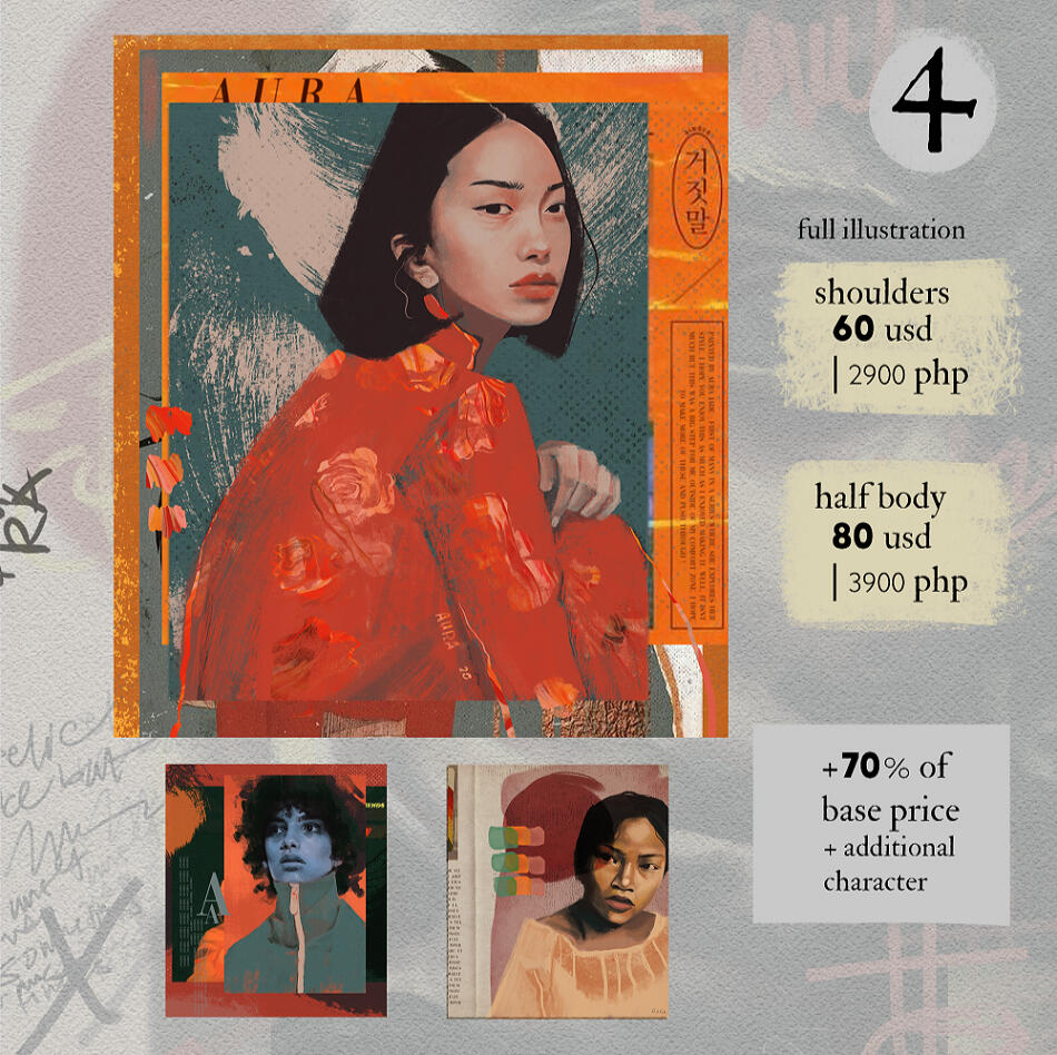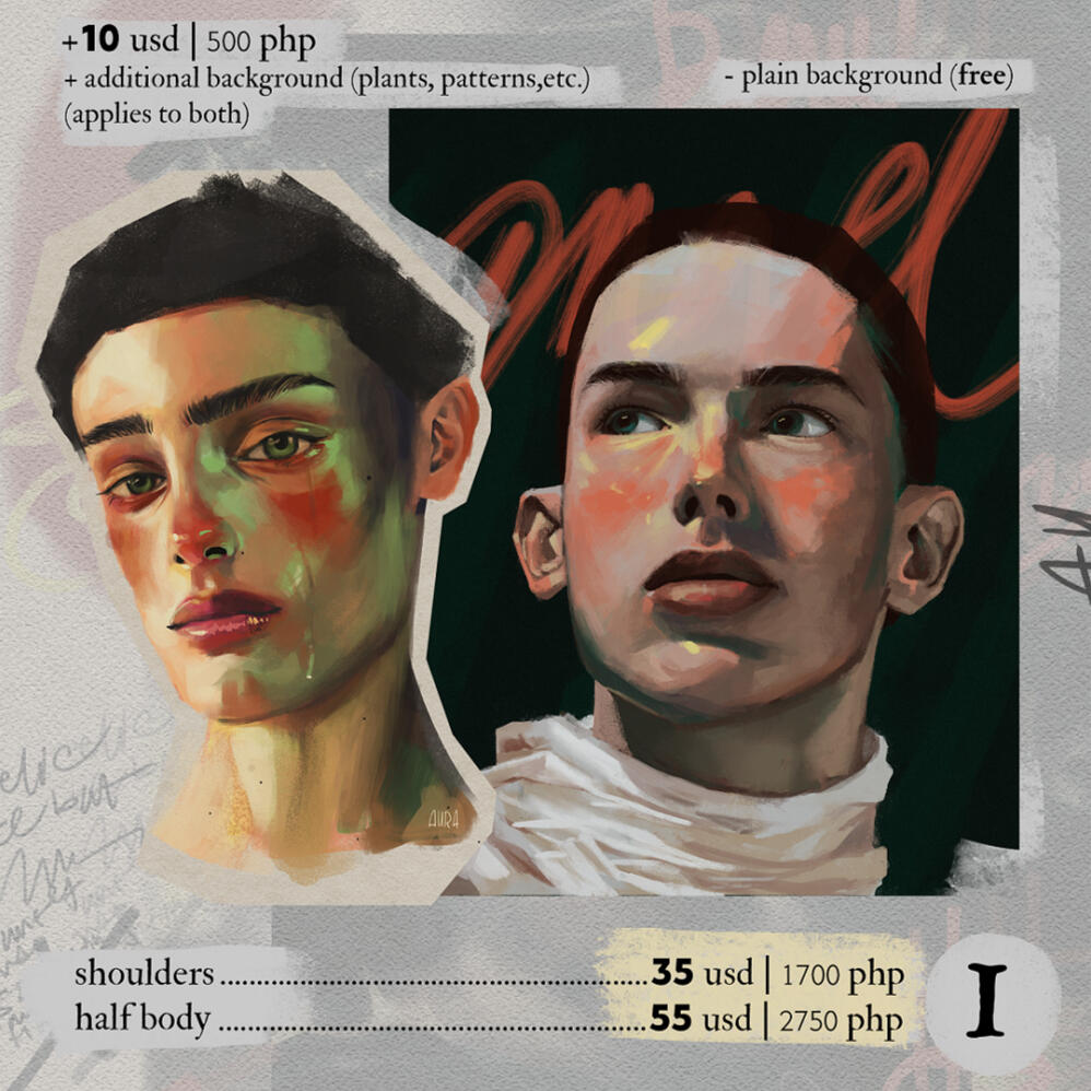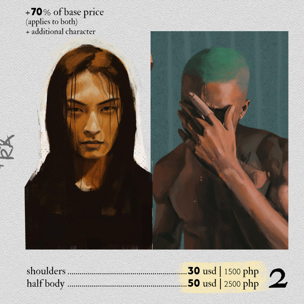 • Expect artwork to reach you through email/google drive link within 2-4 days for portrait work and up to a week for landscape paintings/full illustrations—will accept rush artworks with an additional fee• Mode of payment: Paypal, GCash, or Paymaya